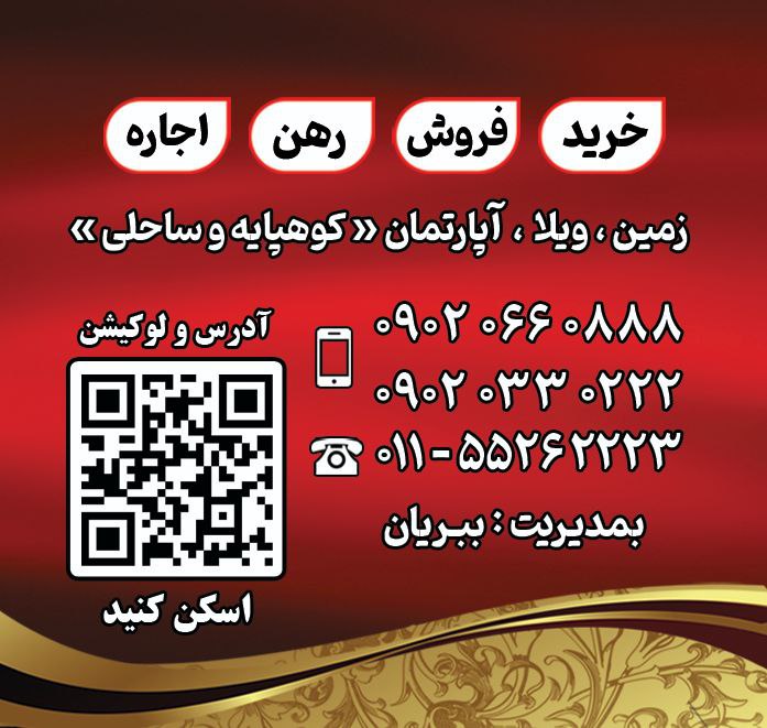 011-55262223شنبه تا پنجشنبه 8 الی 20به مدیریت: نوید ببریان لوکیشن: بلوار عباس مفرد ، نبش کوچه مفرد 10